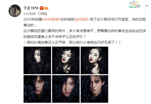于正指TFBOYS七周年写真涉抄袭 喊对圆为“巨星”